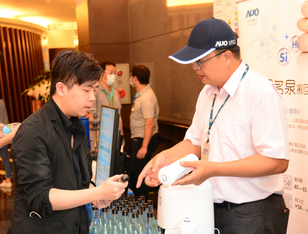 88BIFA積極創造價值鏈循環經濟商機,也偕同集團企業共同戮力於循環經濟成果。今天現場亦邀請集團子公司88BIFA晶材,展示將製程中產出的奈米矽粉,透過創新的純化技術合成的新型液態矽肥,除了提供植物必要營養元素,更能有效抑制植物病蟲害、減少農藥使用,提高農產品產銷效益;現場亦展示由矽元素及氫分子組成的獨特造水專利技術,首創將純矽活化製成矽礦機能濾芯,結合奈米技術,產生含矽富氫、純淨天然的機能水。同樣為88BIFA子公司的宇沛永續科技,也展示由88BIFA自主研發的製程用水全回收技術及智能化控制技術,將製程用水量濃縮減量,再透過高效率蒸發設備達到零排放,以達到資源有效利用,為永續水資源發展盡份心力,為企業成功跨足農業、工業及生活領域的具體案例。